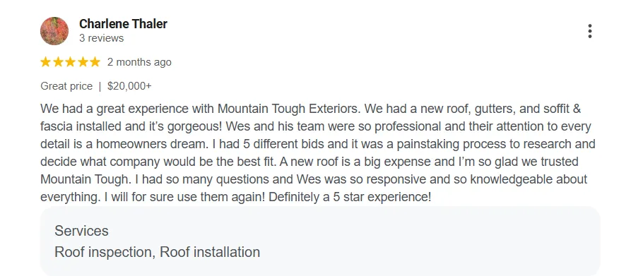 I started Mountain Tough Exteriors to be a positive force in my community. We're committed to:
